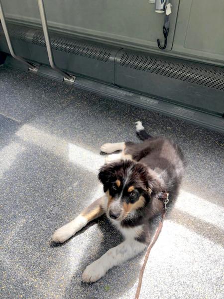 Il primo viaggio in autobus di Kymba è stato molto piacevole; se l'è presa comoda ed è rimasta rilassata. Così i prossimi viaggi con i mezzi pubblici andranno senza intoppi.