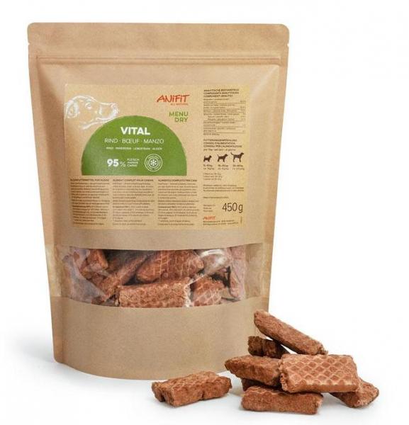 Dog Vital manzo contiene già tutti gli ingredienti per l'alimentazione cruda. Essi sono liofilizzati per conservarli al meglio. Ciò rende questo prodotto la soluzione perfetta per i viaggi.